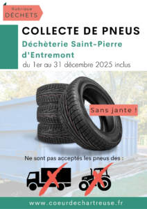 Une benne pneumatiques est accessible toute l‘année sur la déchèterie d’Entre-deux-Guiers.