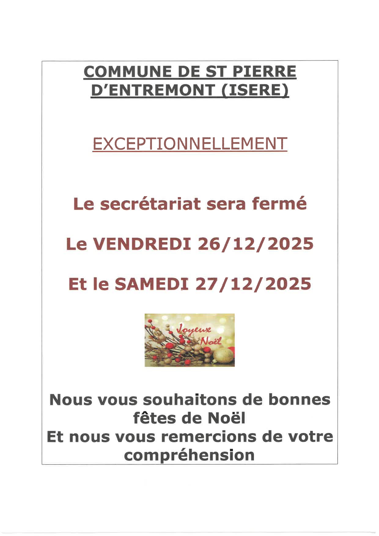 Fermeture exceptionnelle secrétariat de mairie