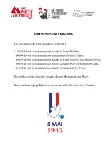 Horaires cérémonies du 8 mai