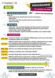 Dans le cadre du Téléthon, Radio Couleur Chartreuse, radio RKS  et Radio Oxygène en partenariat avec plusieurs associations locales, organise une manifestation intitulée « Radiothon » qui se tiendra le 06 décembre à la Maison des Associations de St Laurent du Pont.